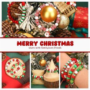 🧿Christmas Decor Pony Bead Kit—— This bead kit includes 280pcs pony beads, 30pcs Christmas style clay beads, gingerbread man, sled, Santa Claus, Christmas tree, snowflakes, bells, and other enamel pendants, as well as holiday colored pearls, star beads, elastic cords, and more, totaling 500pcs of beads