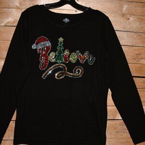 Christmas Believe rhinestone bling long sleeved shirt XS S M L XL XXL 1X…