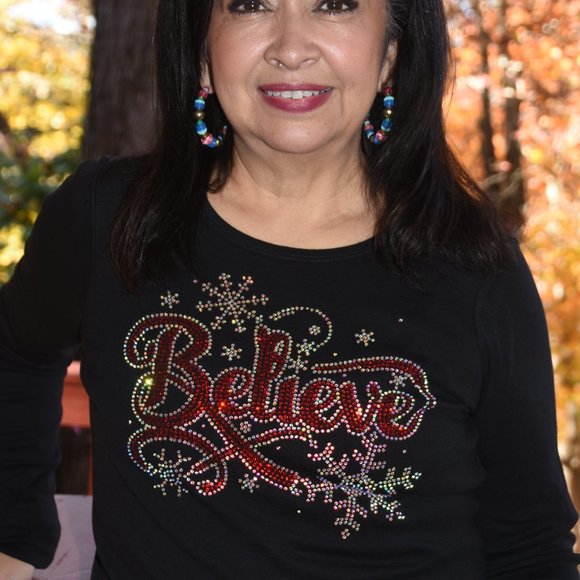 Christmas Believe rhinestone long Sleeve Shirt S M L XL XXL 1X…