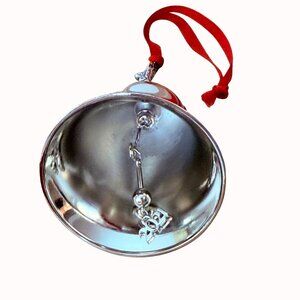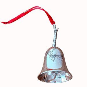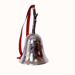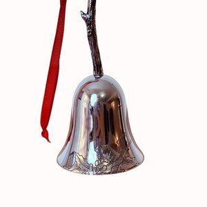 Things Remembered Stainless Steel Silver Toned Christmas Bell Ornament with Red Ribbon | 2021 Holiday Collectible | Elegant Mantel or Tree Decoration with Holly Design