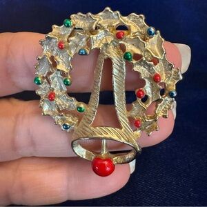 Christmas Bell Wreath Vintage Lapel Brooch Pin Vintage