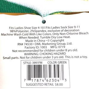 Green & White Stripe Socks with Jingle Bells that jingle when you walk