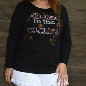Christmas Bling In Holidays rhinestone long sleeved shirt XS S M L XL XXL 1X2X…