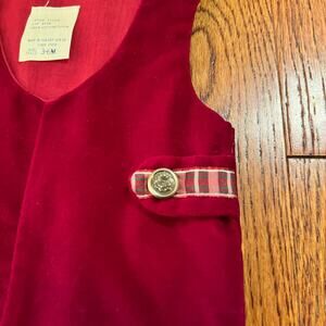 Christmas Boys 3-6 Months Jon Jon Red Velvet One Piece Accent Plaid Gold Buttons