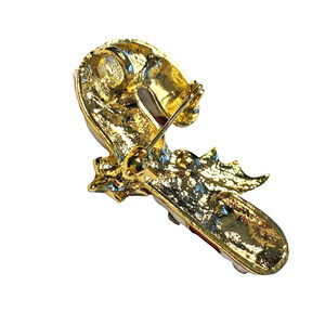 Christmas Candy Cane Brooch or Pendant done in Red & White Enamel on goldtone setting with a scattering of clear and red rhinestones to highlight the piece. A charming festive holiday novelty pin - no hallmarks - nice fashion quality perfect to wear or give as a gift. Pre-owned in excellent condition - Never worn - No flaws - so cute!