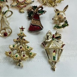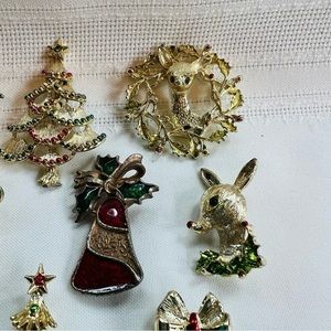 VTG Christmas Brooches ELEVEN Signed Gerry’s Rhinestones Enamel EUC