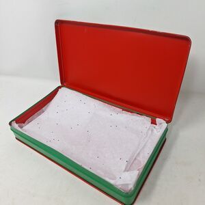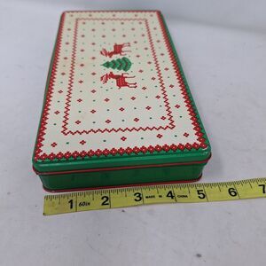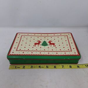 Green, Cream and Red Vintage Reindeer Design Tin - Hinges are a little loose