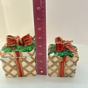 Christmas Candle Set of 3 Hand Painted Ceramic Holiday Gift Box Shaped Candles