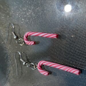 Christmas Candy Cane Dangle Earrings Red White Swirls 1.22 Inch Drop New