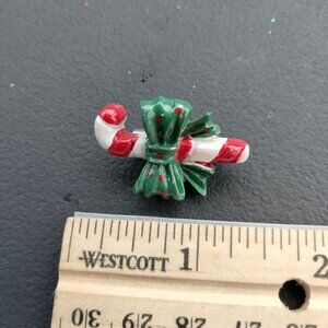 Christmas Candy Cane Pin Brooch Green Red Polka Dot Bow Vintage Holiday Jewelry