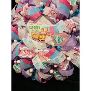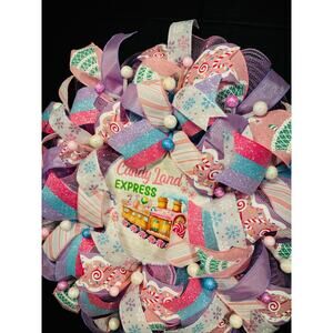 Christmas Candy Wreath, Pastel Pink Blue Purple Door Decor Handmade 22 In