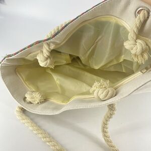 Christmas Canvas Tote Rope Handles 16” X 17” Multi-Colored Stockings Holiday