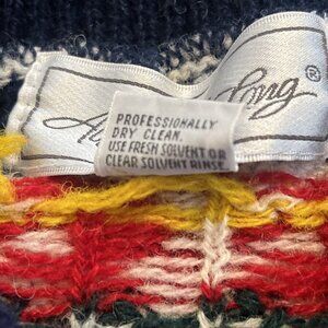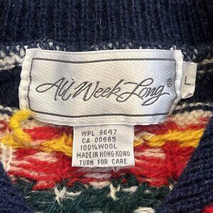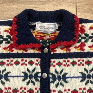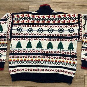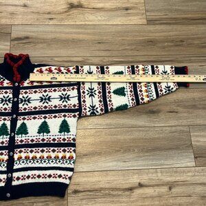 Christmas Cardigan Sweater SZ Large Fair Isle Holiday Trees 100% Wool Collared