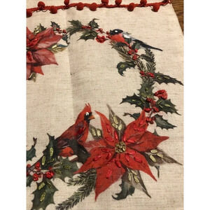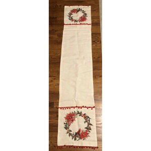 Christmas Cardinal Table Runner Wreath Poinsettia 13 X 69 Pom Poms