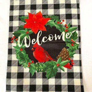 Christmas Cardinal Wreath on Buffalo Plaid Background Canvas Banner...size 12" x 18"...front & back with same design...see photos for details...121821