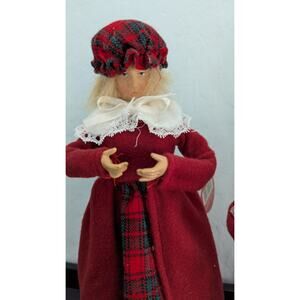 Set of 3 carolers, 2-12"and 1-10". The maroon dress one has a smudge on the back of her dress and is missing her songbook.