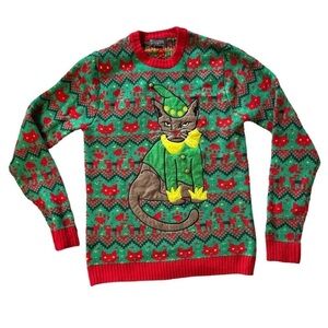Christmas Cat Sweater 33 Degrees, Kitty, Bells, Appliqued, Ugly Size L