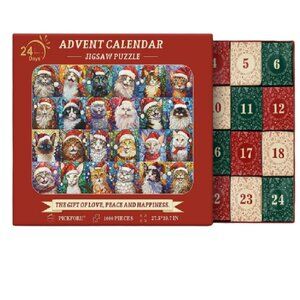 Christmas Cats Mosaic Stained Glass Advent Calendar Jigsaw Puzzle 1000 Pieces