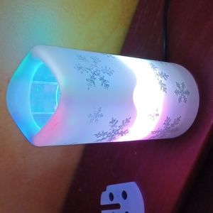 ° it has 4 different plates, designs, candy canes, snowman, snowflake etc. Brighter when the room is darker of course. Batteries will be in it ~