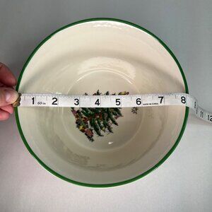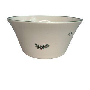 Christmas Ceramic Bowl With Tree & Nutcracker Design Green Trim Holiday Decor
