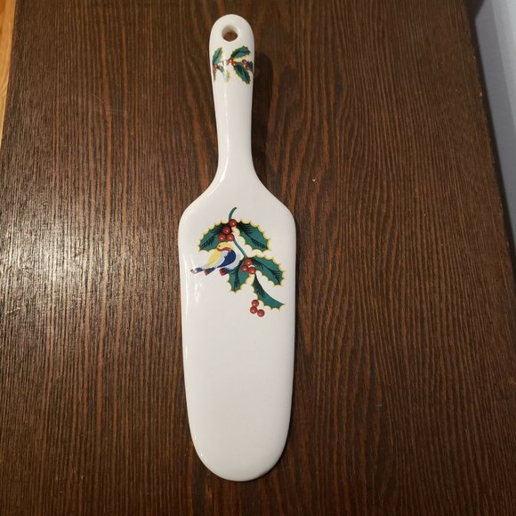 * Beautiful pie server with a winter scene of a bird, holly and berries.