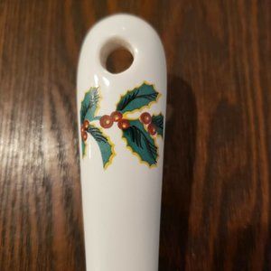 Christmas Ceramic Holiday Pie Cake Server Porcelain Bird Holly Berry