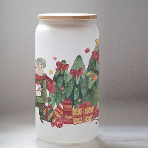 Christmas Character Glasses cup 16 oz glass cup with Straw & Bamboo Lid