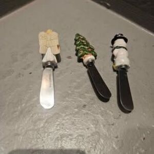 Christmas Cheese Spreaders Ceramic Set of 3 Tree Angel and Snowman