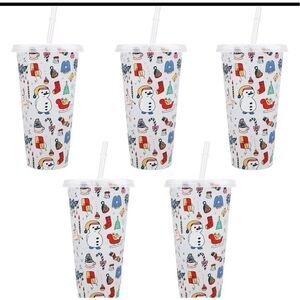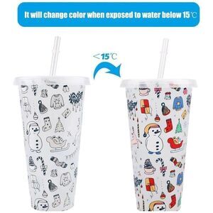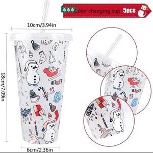 Christmas Color Changing Cups 5 Pcs Plastic Xmas Cups Reusable Travel Lids Straw