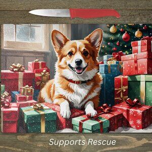 Christmas Corgi Kitchen Tempered Glass Cutting Board or Trivet