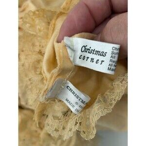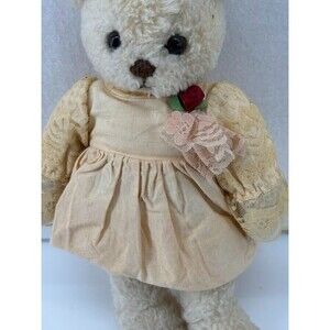 Christmas Corner Vintage White Bear 10" Lace Beige Dress with Roses. No tears or holes. Good vintage condition.