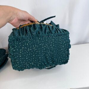 Christmas themed, ruffled edge, handle