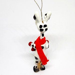 Christmas Cow Caroling Standing Scarf Red White Vintage Wood Holiday Ornament