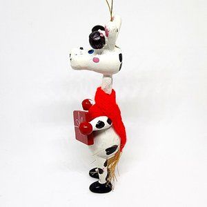 Christmas Cow Caroling Standing Scarf Red White Wood Holiday Ornament