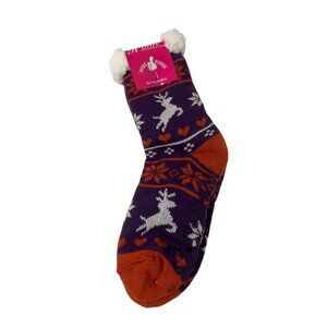 • Burgundy & Rust Contrast Color/Contrast Faux Fur Trim/Fair Isle Reindeer Print/Soft & Cozy/Faux Fur Lined Inner/Non Slip