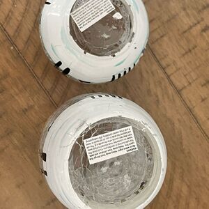 Two cute candle holders. Would look great with fairy light inside. Larger one could be used as a vase.