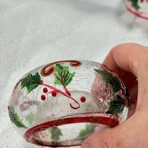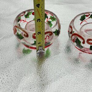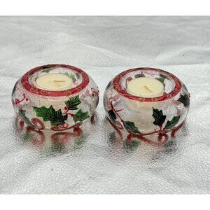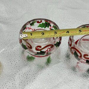 Christmas Crinkle Glass Votive Candle Holders Holly & Swirl Set Of 2 Holiday