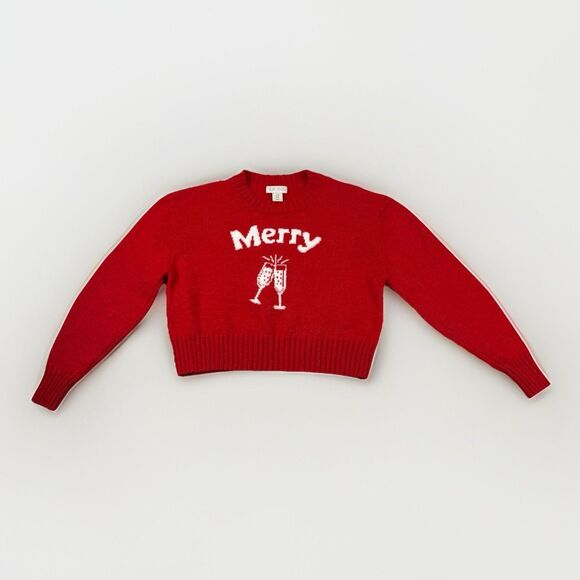 This Christmas Cropped Sweater by Ruby Moon is a festive addition to your holiday wardrobe. The red color, tight-knit fabric, and long sleeves make it perfect for the winter and fall seasons. The sweater features a crew neck, pullover style, and lightweight design for comfort. With a touch of Christmas charm and a "Merry" champagne toast logo accent, this sweater is ideal for casual occasions and adding a festive touch to your outfit. Made from a blend of polyester, wool, and acrylic, this sweater is machine washable for easy care.