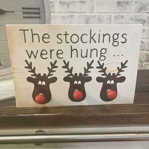 3 spots for stockings to be hung and the pegs are the red noses, super cute !