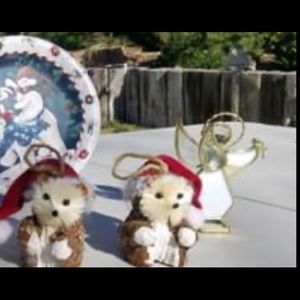 Includes 3 raccoon animals, one plate, one light candle, one glass angel, and one snowman display. Indoor use only