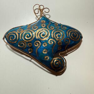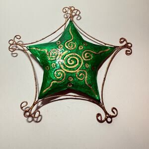 Christmas Decor Capiz Star Ornament 5 Pieces Gold Spirals Swirls Red Green Blue