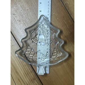 Christmas Decor Clear Glass Dish. Tree shape Candy. Nuts Trinkets. Bells. Cabin