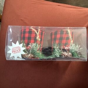 Christmas Decor Red Black Checkered Hats Shatter Proof New with Tag