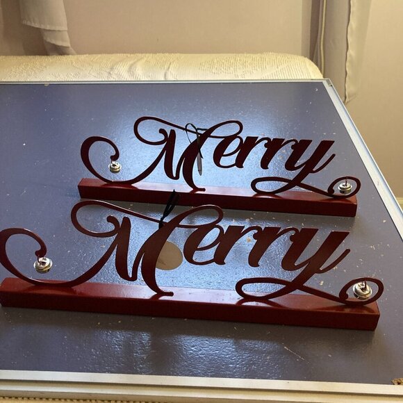 One of the decorations has a chip in the front and on the curled part of the letter M