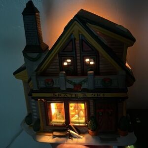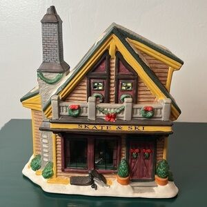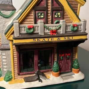 Vintage Christmas Delights hand painted porcelain light up skate & ski shop house