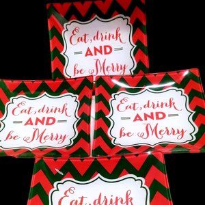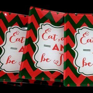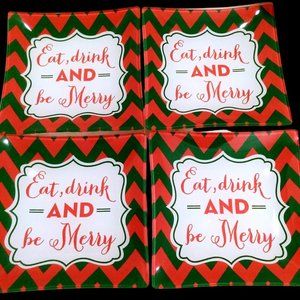 Listed for sale are Four (4) Eat, Drink, and Be Merry Christmas Glass Snacks, Canape, Appetizers, or Hors d'oeuvre Trays by Slant. The trays are in excellent condition., free of cracks, scratches, and crazing.