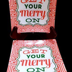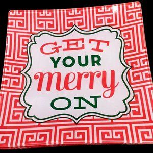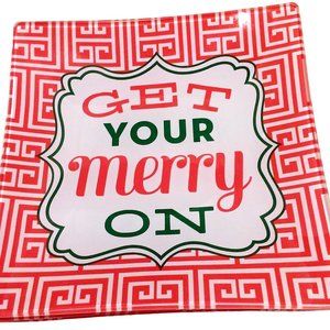 Listed for sale are Five (5) “Get Your Merry On” Christmas Glass snacks, canapes, appetizers, or hors d'oeuvre Trays by Slant. The trays are in excellent condition, free of cracks, scratches, and crazing.