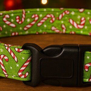 Christmas Dog Collar, Green Holiday Pet Collar, Candy Canes Cotton Collar Large