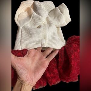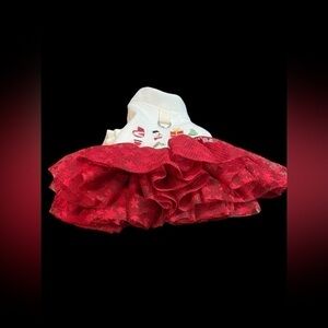 Christmas Dog Dress Lace Tulle Bottom Leash attachment Beige Red embroidery