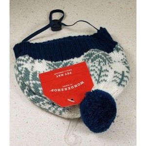 Christmas Dog Hat Blue Pom Pom Adjustable Elastic size Small/Medium New With Tags